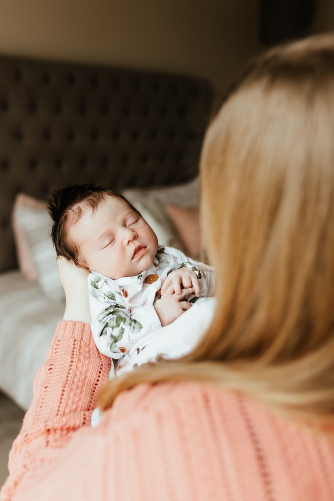 Another thing you can prepare ahead of time is have anything baby might be wearing out and ready. When I arrive at a client’s house I like to see all the options for baby to wear at the beginning of the session. Sometimes certain outfits or swaddles will look better with certain decor or colors of certain rooms. If there are any special mementos a client would like to include in photos I like to know that before I start so I can plan on when to use them during my workflow for the session.