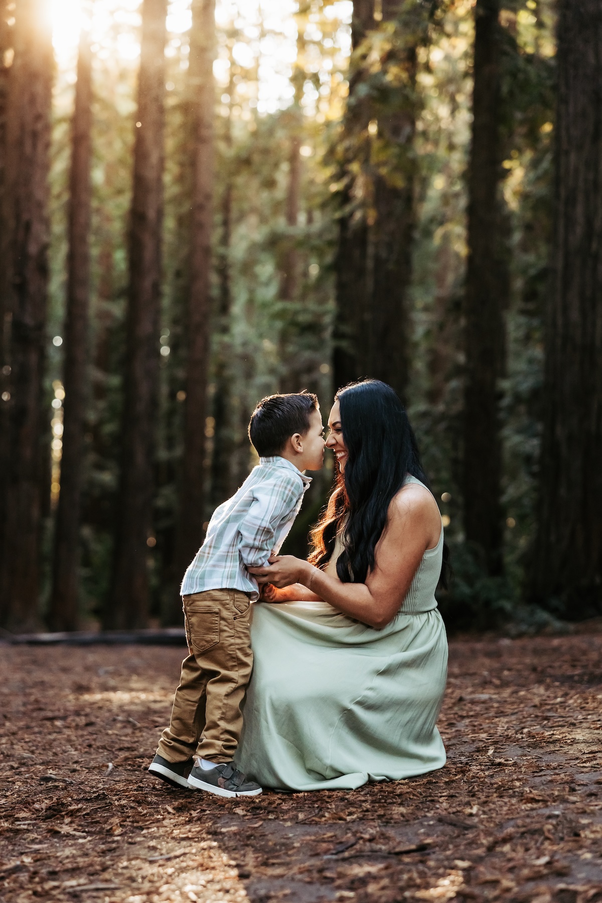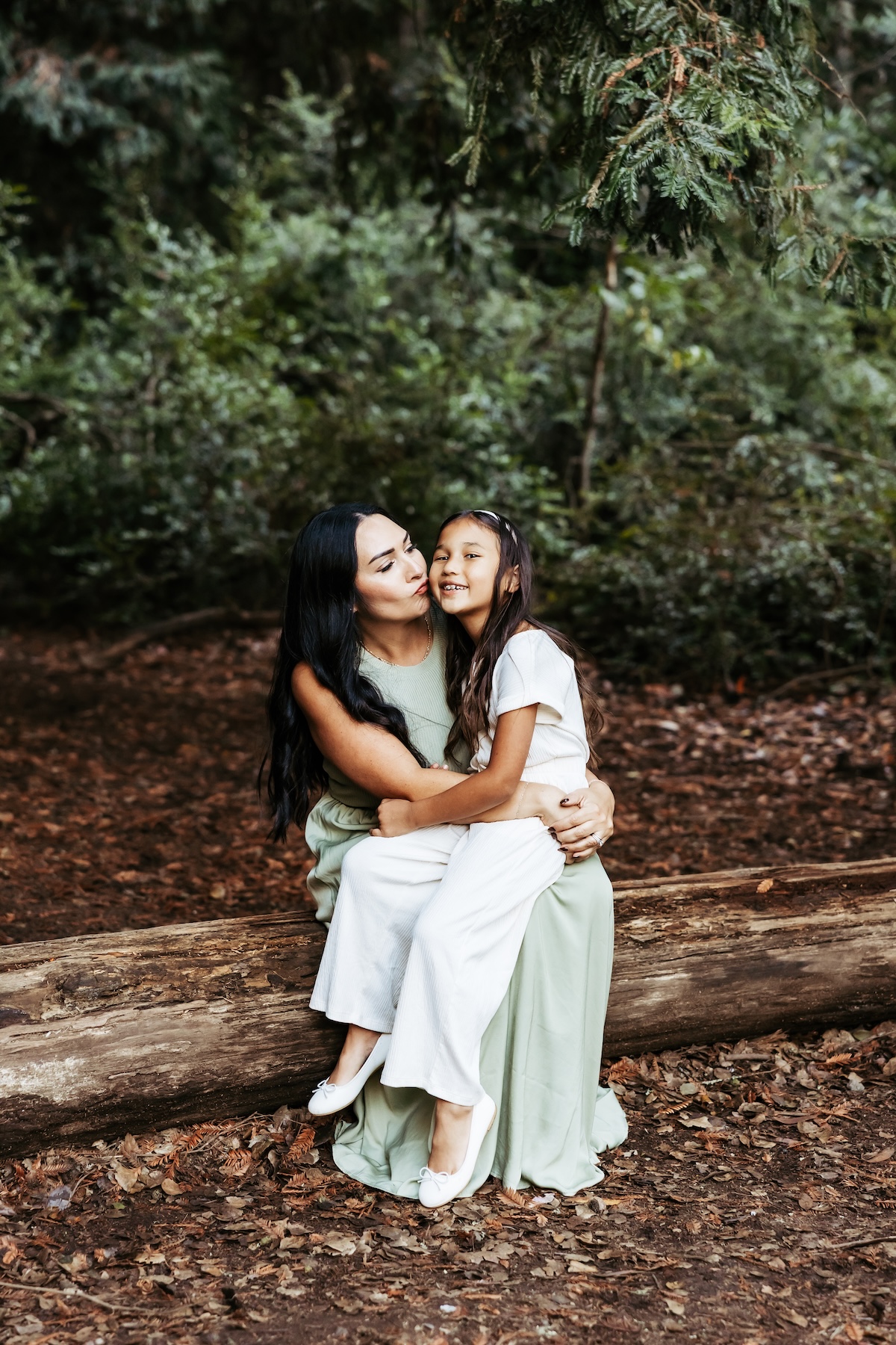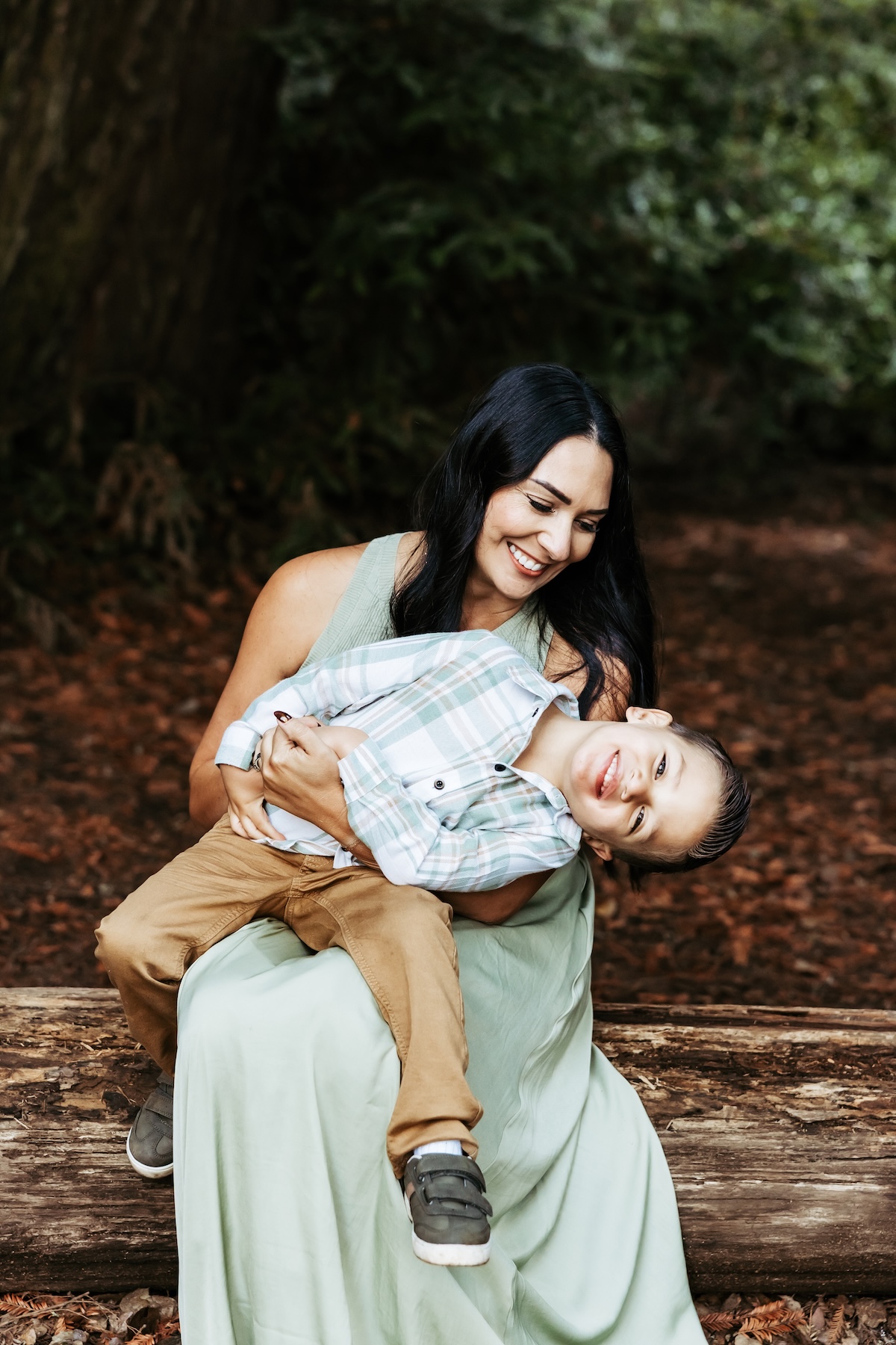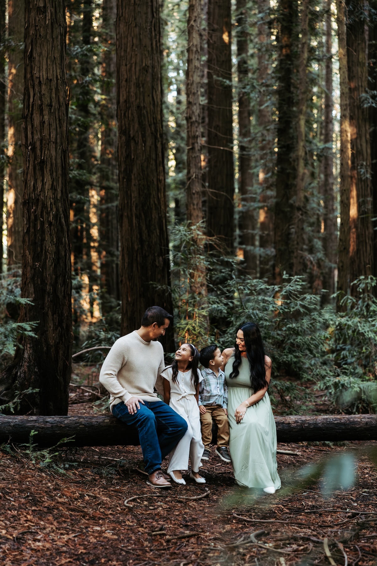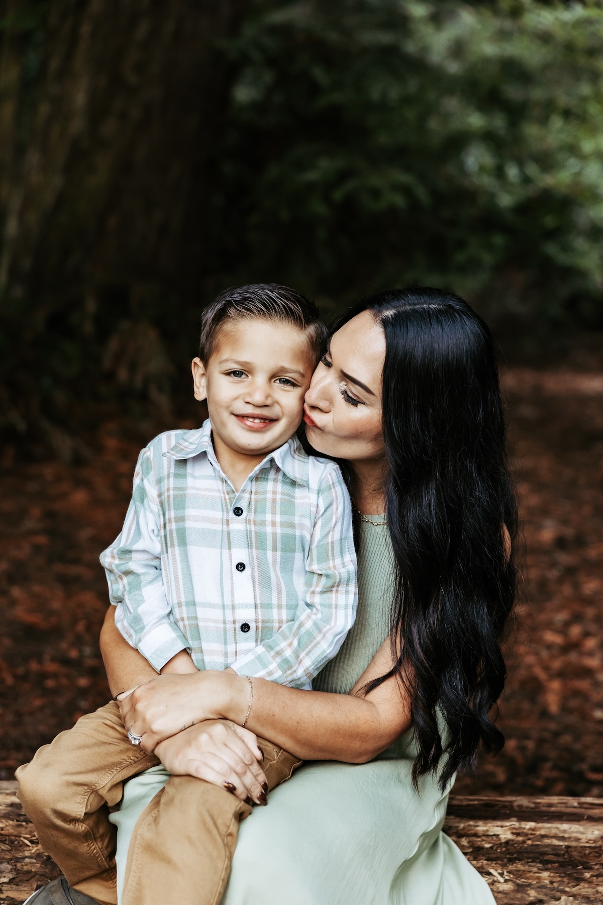 The session is off to a rough start, unfortunately. Your youngest child isn’t in the mood for a photo shoot even though you’ve been hyping up this fun “activity” all week. You bend down and have a chat with him to remind him how much he was looking forward to taking pictures in the forest to hang them on the wall at home. You also remind him that there is a reward at the end of this. On my recommendation you told your kids that if everyone put their best foot forward during picture time they could have ice cream when we got home. And the time during this chat was not wasted. While you had a talk about feelings with your son, I snapped a couple of photos of your partner and older child together and when things had cooled off for your youngest I captured the sweetest hug at the end of your talk.