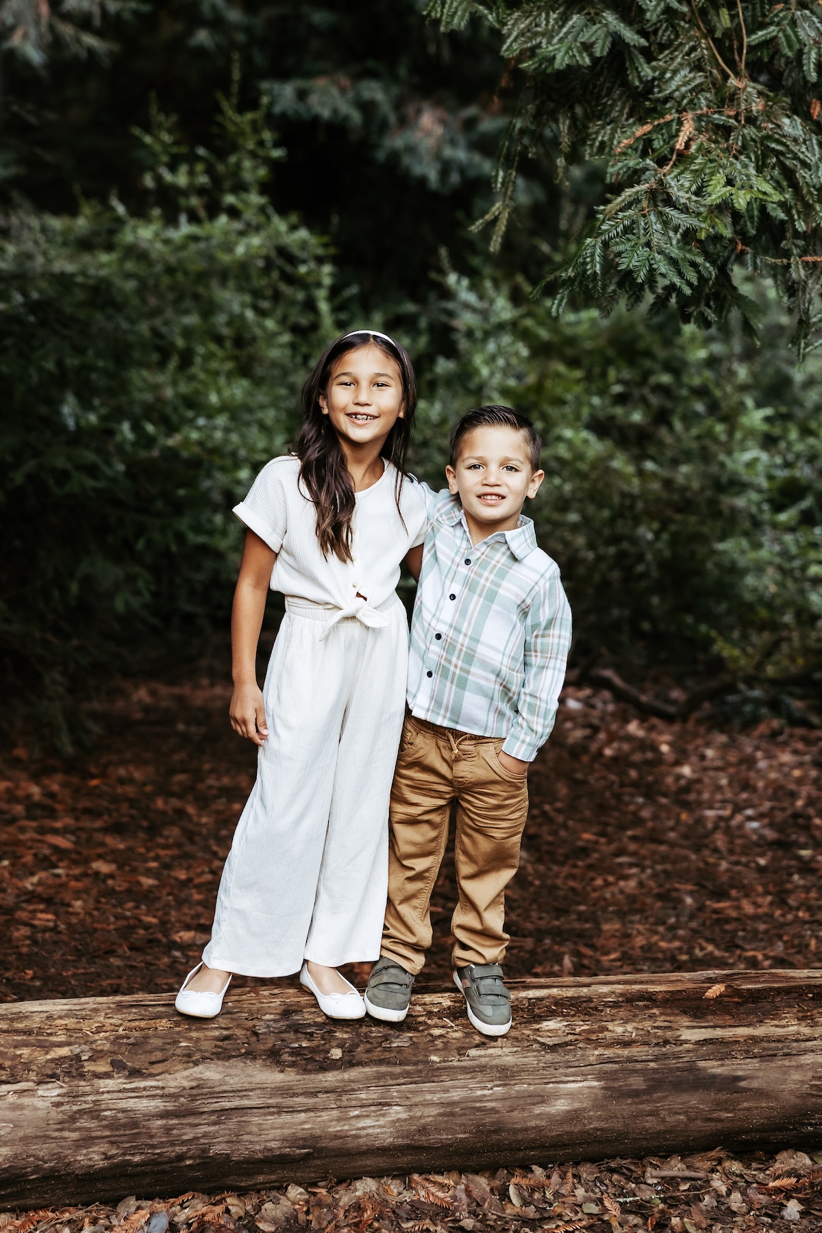 Then we are off to our next spot. It’s almost like I have a map in my head I am following and checking off a list of “stops” along the way. We spend a little bit of time at each spot and I give you prompts instead of poses. They start off simple, like walk to me side by side while dad tells a joke or parents help the kids balance walk on a fallen log. There are some poses mixed in the assortment too so you can get a couple of shots with everyone smiling at the camera or at each other. All the shots you can think of I am already on top of getting like each child individually, both kids together, each parent with kids and even one of the parents without kids. I ask you if there are any poses or shots I may have missed and you ask to recreate a picture that you have of you with your own father.
